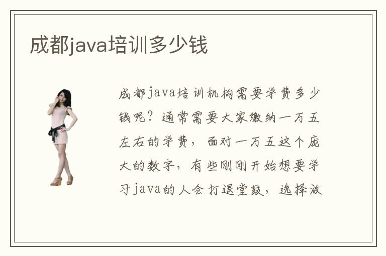 成都java培训机构需要学费多少钱呢?通常需要大家缴纳一万五左右的学费,面对一万五这个庞大的数字,有些刚刚开始想要学习java的人会打退堂鼓,选择放弃java的学习。其实java的学习是一段漫长而又枯燥的过程,没有专业培训机构授课名师的一对一指导,很容易让大家忽视很多java的小细节,日积月累的变成很多大问题,专业就无法更好的掌握java专业技能了。