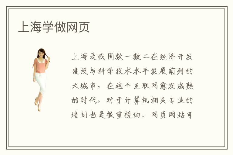 上海虽然地理位置条件并不是很好,上海地区的经济、科技水平也没有达到比较高的水准,但是,这些依然不是阻挡学生们学习网页设计的热情的原因了。在上海学做网页需要在培训老师的专业的指导下,有一个比较高水平的培训机构去帮助自己学习。上海学习网页设计难度大不大?上海网页设计与制作专业发展前景好不好?上海网页设计学好能受益匪浅。