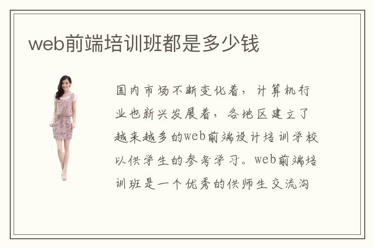 国内市场不断变化着,计算机行业也新兴发展着,各地区建立了越来越多的web前端设计培训学校以供学生的参考学习。web前端培训班是一个优秀的供师生交流沟通、可以零距离接触的线下平台,方便学生更好地学习,方便老师更好地进行培训工作。web前端培训班都是多少钱?web前端培训班平均培训费用是多少?web前端培训班在国内大概的学费水平是多少?