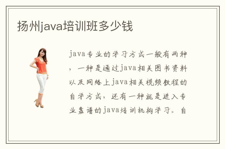 java专业的学习方式一般有两种,一种是通过java相关图书资料以及网络上java相关视频教程的自学方式,还有一种就是进入专业靠谱的java培训机构学习。自学的优势在于,需要的资金成本很少,但是需要花费的时间却很长,几个月、几年甚至几十年都没有完全掌握java技能的人不在少数。而专业的培训班就避免了这些问题,那么,扬州java培训java培训班都学费是多少钱呢?