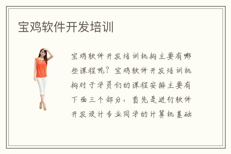 宝鸡软件开发培训机构主要有哪些课程呢?宝鸡软件开发培训机构对于学员们的课程安排主要有下面三个部分,首先是进行软件开发设计专业同学的计算机基础能力测试,根据计算机基础能力的不同进行不同的基础课程安排。接着是进行软件开发设计专业的理论教学,深入了解软件开发设计专业的技能。最后是进行软件开发设计实践项目的训练,在宝鸡软件开发培训过程中掌握丰富的实践经验。