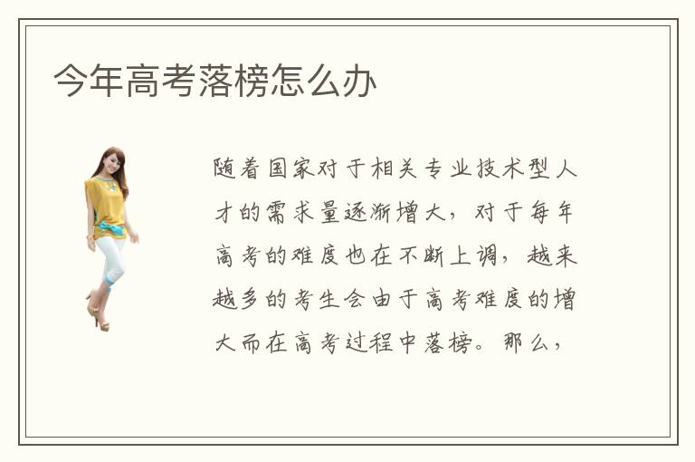 高考落榜这一现象在当今社会已经不再少有了,而且随着高考难度的不断增加,每年高考落榜考生的数量也在不断增多。那么,这些高考落榜考生怎么办呢?高考落榜对于考生们来说是一个巨大的打击,很多考生会迷失自己的学习方向,对未来失去了信心,从而变得自暴自弃起来。高考落榜其实也是一个专业技术学习的好机会,因此高考落榜考生要做的就是调整好心态,努力学好专业技术。