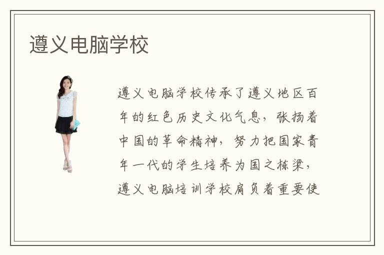遵义电脑学校开办多年,是学生学习计算机知识的好场所,遵义电脑学校对老师的筛选也都是有自己的一套标准的,学校保证进入遵义计算机培训中心的学生们能够收获高质量的教学。遵义计算机培训中心培训效果很值得大家期待,遵义电脑培训班培训成果大家也可以关注一下,因为培训结果的好坏也在一定程度上反映了遵义电脑培训机构哪家强的问题。