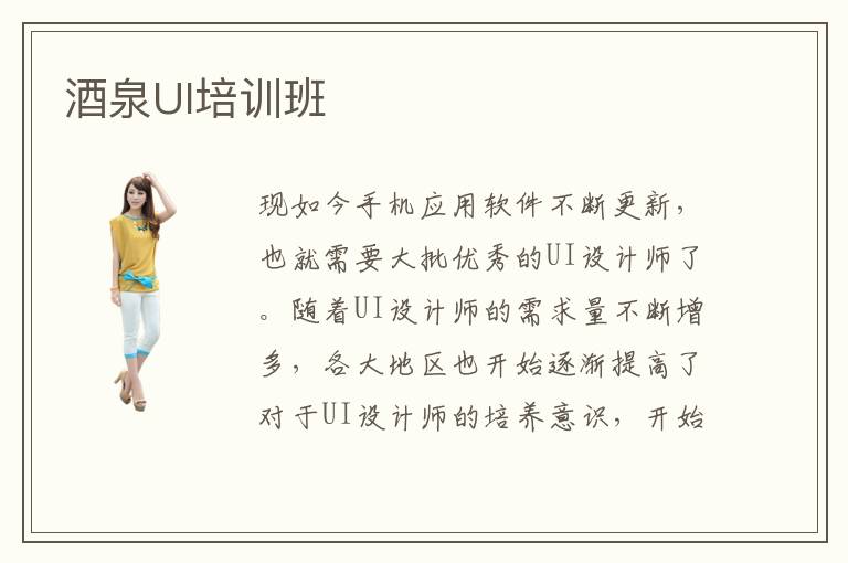 酒泉是历史上著名的革命红色基地,这几年随着国内的科技事业的发展进步,这些年,酒泉也在发展自己的科技实力。酒泉UI培训班培训课程有哪些?酒泉UI培训机构价格费用贵不贵?酒泉UI培训设计有用吗?酒泉UI培训机构一年的学习报名费用大概需要花费多少钱?酒泉UI设计培训拥有丰富的教育资源,教学程度也是比较高的,教学质量还是值得期待的。