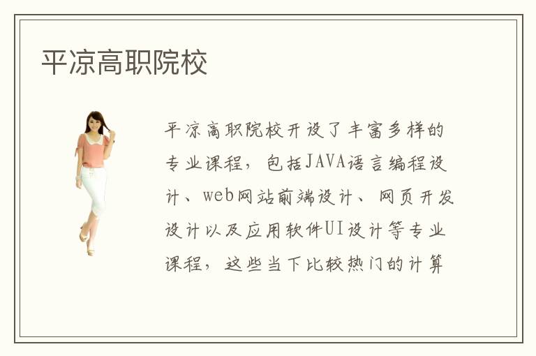 平凉高职院校开设了丰富多样的专业课程,这样也就给平凉高职院校的在校学员更多选择的机会,可以。让学员们充分考虑自身的实际情况以及兴趣进行选择。不同的专业所需要学习的专业课程是不同的,那么,平凉高职院校给学员们安排哪些相关专业课程呢?根据市场的不断变化,为了能够使得平凉高职院校学员在毕业后拥有更大优势,平凉高职院校所安排的课程也在做相应的调整。
