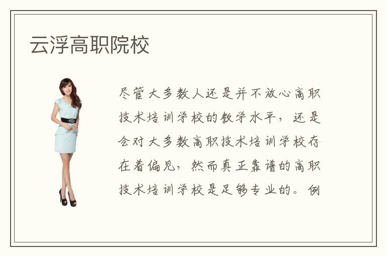 尽管大多数人还是并不放心高职技术培训学校的教学水平,还是会对大多数高职技术培训学校存在着偏见,然而真正靠谱的高职技术培训学校是足够专业的。例如云浮高职院校就是一所各方面综合实力都比较靠谱的专业,云浮高职院校相对于其他高职学院来说具有很大的优势。最简单的,云浮高职院校的师资团队就是各大名校的高材生,在专业课程教学质量方面自然是比较权威的。