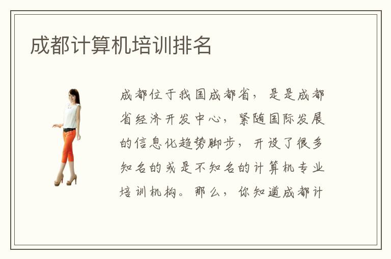 成都位于我国成都省,是是成都省经济开发中心,紧随国际发展的信息化趋势脚步,开设了很多知名的或是不知名的计算机专业培训机构。那么,你知道成都计算机培训计算机培训排名是什么嘛?为了方便广大成都学子更好的学习计算机专业,北大青鸟计算机专业培训机构、达内计算机专业培训机构等,国内一流的计算机专业培训机构,都在成都地区开设了分校区,也无疑成为了培训机构排名中数一数二的学校。