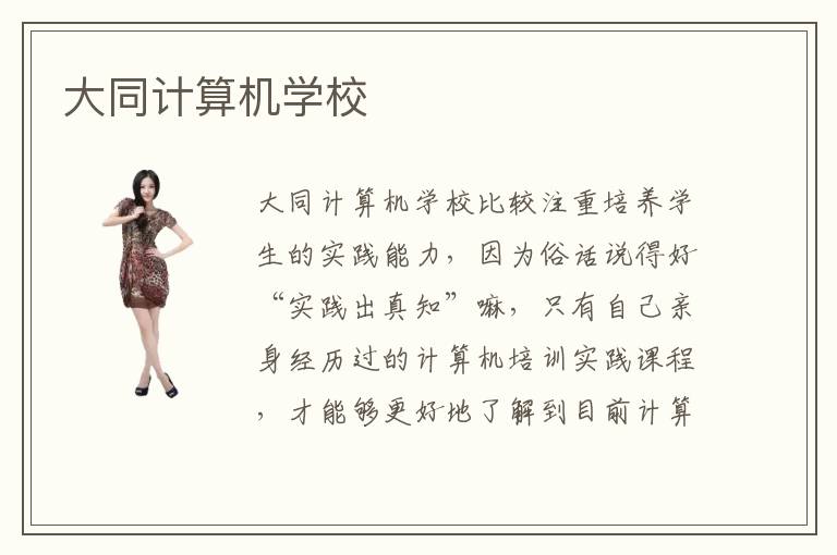 计算机技术随着互联网时代的发展而越来越被孰知,学生们学习掌握好计算机技术就能够为自己争取更多的就业机会,能够被更多的企业公司接纳,极大发挥出自己的聪明才干。大同计算机学校有专业的教学力量,学习的热情被点燃。大同计算机培训机构教学特色是什么?大同电脑培训中心教学优势有哪些?大同电脑培训中心不仅有优质的教学设备还有丰厚的教学资源。