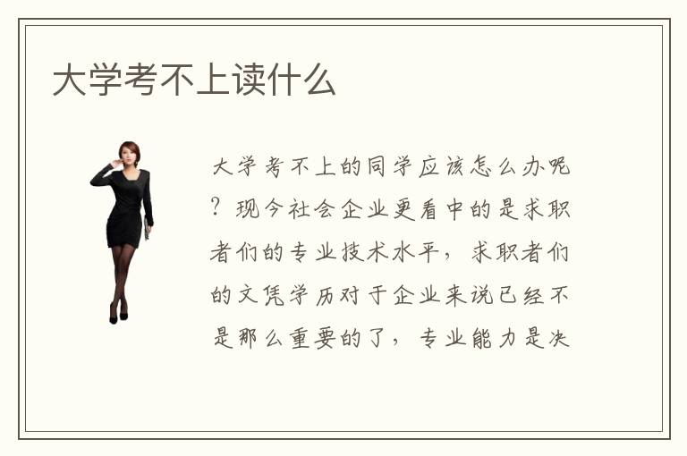 大学考不上的同学应该怎么办呢?现今社会企业更看中的是求职者们的专业技术水平,求职者们的文凭学历对于企业来说已经不是那么重要的了,专业能力是决定求职者留下与否的根本。因此考不上好大学的同学需要做的第一步就是观察市场的发展趋势,选择一门适合自己的并且具有广阔发展前景的专业课程进行学习。要知道,学好一门专业技术对于今后的就业、工作是大有帮助的。