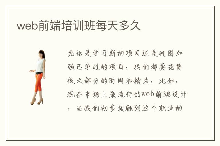 无论是学习新的项目还是巩固加强已学过的项目,我们都要花费很大部分的时间和精力,比如,现在市场上最流行的web前端设计,当我们初步接触到这个职业的时候,可能对它不甚了解,所以,进入web前端培训班学习就显得尤为必要了。那么,web前端培训班每天学习培训的时间是多久?web前端培训班的培训周期是多少时间?web前端培训班培训时长?