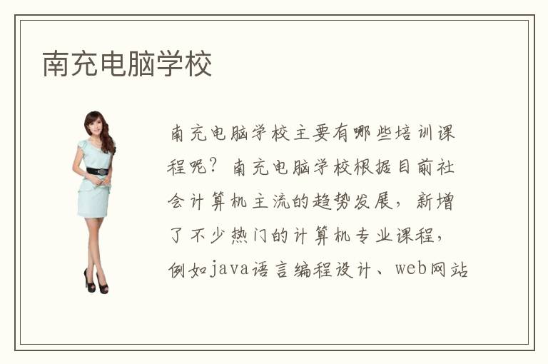从各大招聘信息网站上就不难看出各行各业都需要大批优秀的计算机相关技术型人才,这点足以见得计算机相关专业技术型人才在国内的发展前景是极好的。那么,怎样才能学好计算机相关专业呢?首先要做的就是选择一所各方面综合实力都比较靠谱的专业计算机培训学校,其次就是进行自己感兴趣的,以及适合自己学习的计算机相关专业挑选,那么南充电脑学校有哪些专业课程呢?