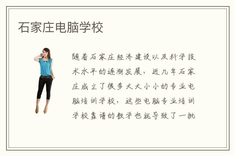 随着石家庄经济建设以及科学技术水平的逐渐发展,近几年石家庄成立了很多大大小小的专业电脑培训学校,这些电脑专业培训学校靠谱的教学也就导致了一批又一批优秀的电脑相关专业技术型人才的诞生。那么,你知道这些石家庄电脑学校他们的教学质量可靠?石家庄电脑学校的选择要考虑很多方面的因素,例如学校的教学团队、课程安排以及学员就业安排这三大学员最关注的问题。