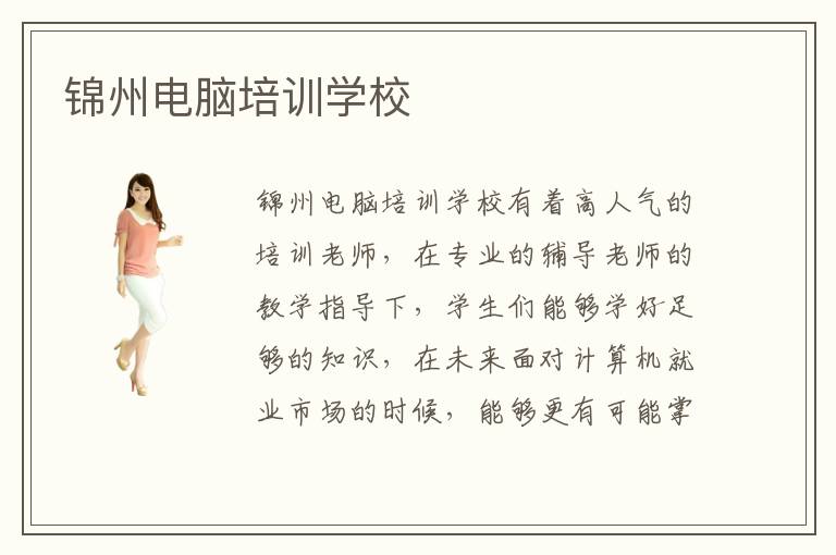 各种各样的计算机相关专业在国内都有着很好的发展前景,越来越多的人想要加入计算机。相关专业的学习队伍中去了。那么,究在哪里才能学到专业的计算机相关专业技术呢?哪里的计算机专业教学水平比较高呢?锦州电脑学校开设了丰富的计算机课程,大家可以根据自己的兴趣爱好以及自身实际情况进行专业的选择,不同的专业锦州电脑学校会安排不同的专业课程,因此锦州电脑学校算是比较靠谱的计算机培训学校了。