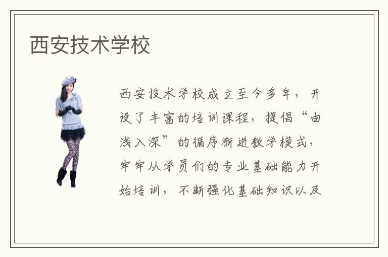 选择一家靠谱的培训学校需要从它的各个方面进行考察筛选,需要从口碑、师资力量以及教学水平等各个方面进行考虑。发现西安技术学校的口碑比较好,是选择这家培训学校的第一步,口碑就是各位学员对于这家培训学校的第一印象。其次要考虑这家培训学校所打造的师资团队够不够专业,以及在校教师的教学质量过不过关等等,是一个看似简单却并不简单的工作。