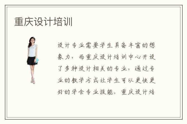 各行各业都需要出色的设计专业人才,然而优秀的设计人才却是很少见的。作为一名优秀的设计专业人才,天马行空的丰富想象力是必备的,不断创新的设计是各大企业所需要的。重庆设计培训主要是针对现如今各行各业紧缺设计专业技术型人才的现状,用高质量的教学方式,让更多人可以了解设计相关专业,学习设计相关专业,在未来可以成为一名优秀的设计技术型人才。