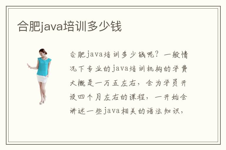 合肥java培训java培训多少钱呢?一般情况下专业的java培训机构的学费大概是一万五左右,会为学员开设四个月左右的课程,一开始会讲述一些java相关的语法知识,进行语法能力的练习,扎实基础。后期会开设一些实践课程,比如说做一些小型软件的语言编程,甚至是参与一些企业的项目设计,增长学员的见识,锻炼学员的动手操作能力,因此进入培训机构学习是很有效的。