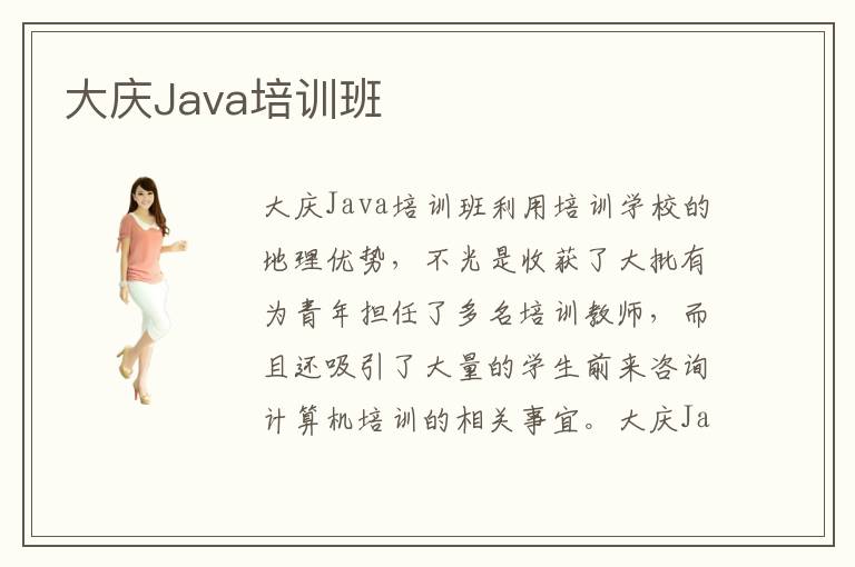 大庆Java培训班利用培训学校的地理优势,不光是收获了大批有为青年担任了多名培训教师,而且还吸引了大量的学生前来咨询计算机培训的相关事宜。大庆Java脚本设计培训原则是以学生就业工作为重,力求在接受培训的这一个周期内,学生在计算机素养上能够有一个比较大的突破。大庆Java培训机构实力排名准确吗?大庆Java计算机培训学校在国内培训机构中排名如何?