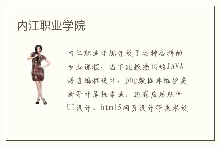 内江职业学院开设了各种各样的专业课程,当下比较热门的JAVA语言编程设计、php数据库维护更新等计算机专业,还有应用软件UI设计、html5网页设计等美术设计专业都存在于内江职业学院的教学课程安排中。内江职业学院通过自己专业化的专业教学培训,使得每年都有大批优秀的技术型人才毕业,也顺利的为内江市的各行各业提高新鲜的技术力量,也进一步推动了内江市的社会信息化发展。