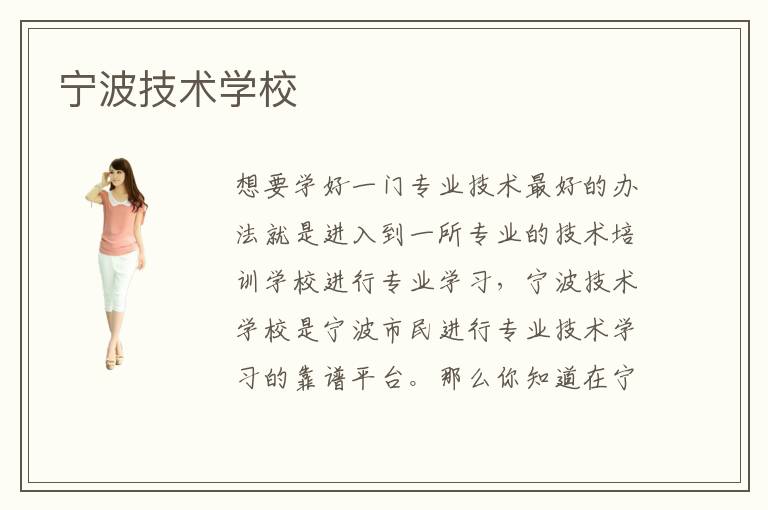 宁波作为我国的首都城市,是一个最能体现我国经济建设水平与科学发展等综合情况的城市,作为我国的一线发展大城市,要想进一步推动城市进步对于技术型人才的招聘需求量自然是很大的。宁波也是比较具有对于技术型人才培养意识的,成立很多不同品牌的专业宁波技术学校,通过一系列高质量的专业教学培训也顺利为宁波的各行各业培养了一批又一批技术人才,那么宁波技术学校哪家好呢?