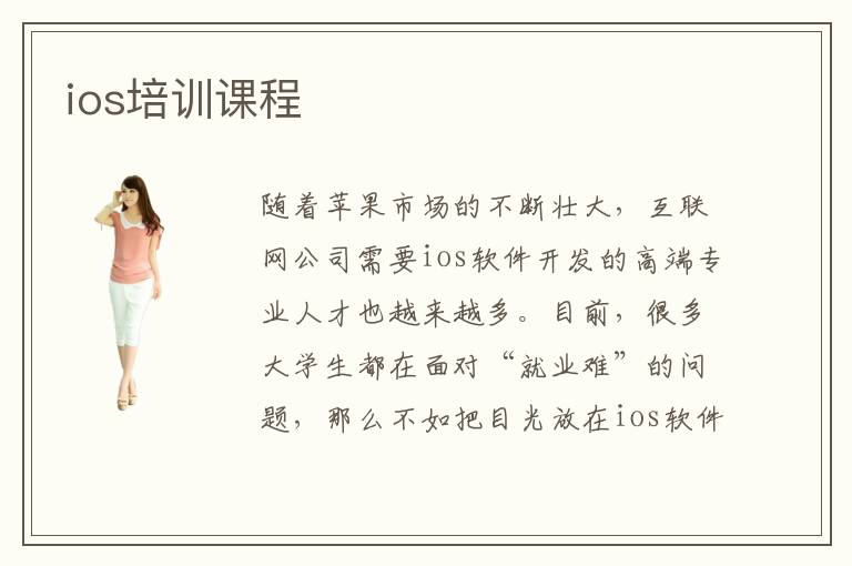 随着苹果市场的不断壮大,互联网公司需要ios软件开发的高端专业人才也越来越多。目前,很多大学生都在面对“就业难”的问题,那么不如把目光放在ios软件开发上,各大企业对于这一方面的人才都很紧缺。学习ios就要选择一家权威的ios培训机构去学习,那么,ios培训课程会开设哪些课程呢?一般都会从基础课程开始学习,循序渐进,才能把技能学的扎实。
