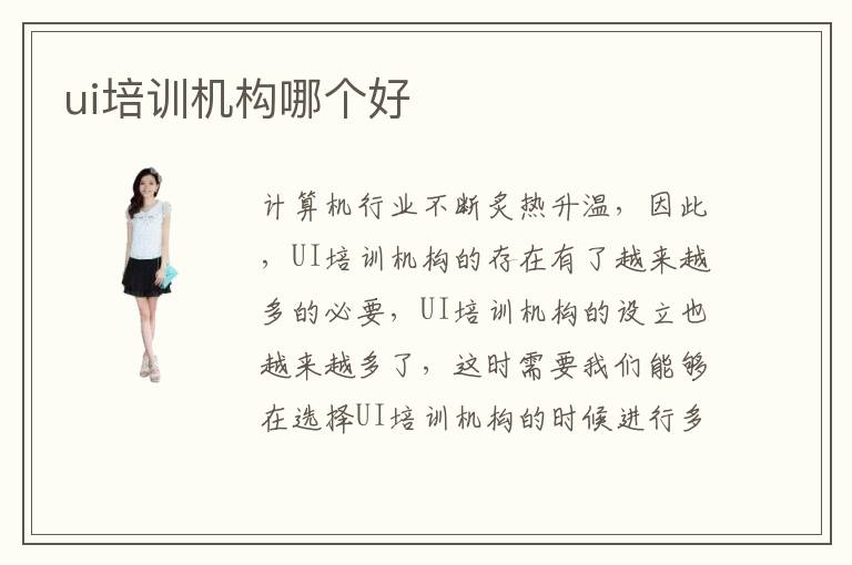 计算机行业不断炙热升温,因此,UI培训机构的存在有了越来越多的必要,UI培训机构的设立也越来越多了,这时需要我们能够在选择UI培训机构的时候进行多方面的比较比对,沉着地做出自己心里的判断,对于UI培训机构哪个好这个问题,一千个人有一千个哈姆雷特,所以,这些答案还是需要我们自己来寻找,UI培训全国排行情况怎么样?UI培训机构哪家的好?