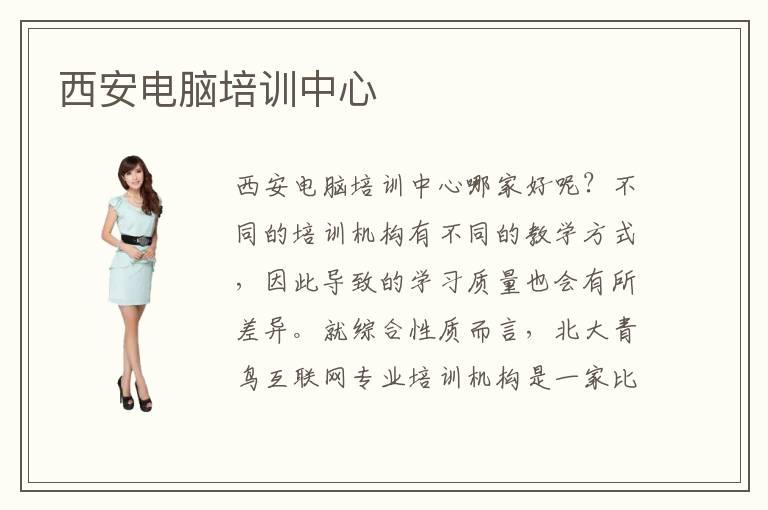 搜索西安电脑培训机构电脑培训机构排名,我想名列前茅的一定有北大青鸟互联网专业计算机培训机构吧?下面我就来重点给大家介绍一下北大青鸟的相关信息吧。北大青鸟秉承着“一切都以学员的就业问题为先导因素”的教学理念,从基础课程开始教学,不断训练,打造学员扎实的计算机基础,这使得学员在今后的学习工作中遇到的困难,就会迎刃而解,很大效果的提高了工作效率。