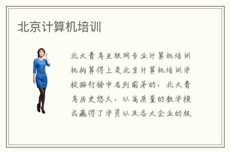 北京计算机培训机构哪家好呢?我来给大家推荐一所名叫北大青鸟的互联网专业计算机培训机构。北大青鸟致力于为国内的互联网行业培养高端优秀的it技术型人才,秉承用良心做好教育的先进理念。强大,打造了一直最权威的授课团队,营造幽默风趣的课堂学习氛围,打破了传统计算机专业枯燥无味的课堂学习观念,让学员在潜移默化中体会到it专业学习的乐趣。