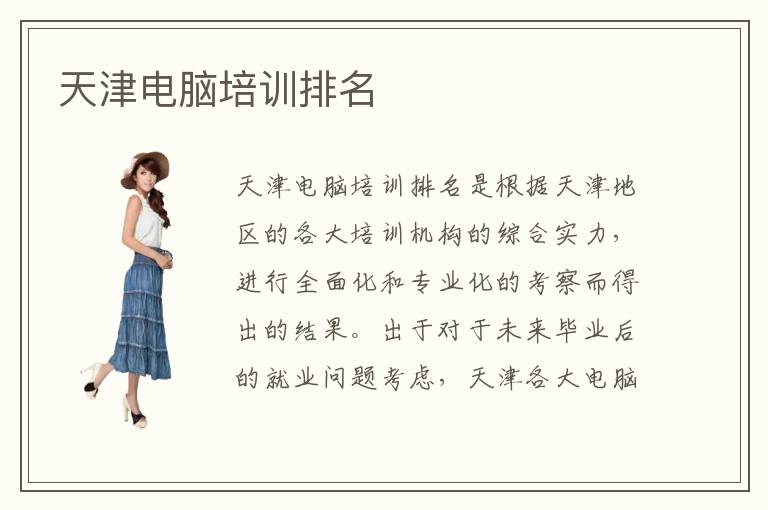 天津电脑培训机构电脑培训机构排名是我们各位学员在选择培训学校时候的一个重要参考依据,天津地区的计算机培训学校有很多,不同的教学团队自然会产生不同的教学方式,要想选择一家适合自己的靠谱的培训机构,就需要大家进行对于各大专业计算机培训机构的多方面因素的反复比较、不断筛选。而参考天津电脑培训机构排名将会让你高效率的选择到合适的培训学校。