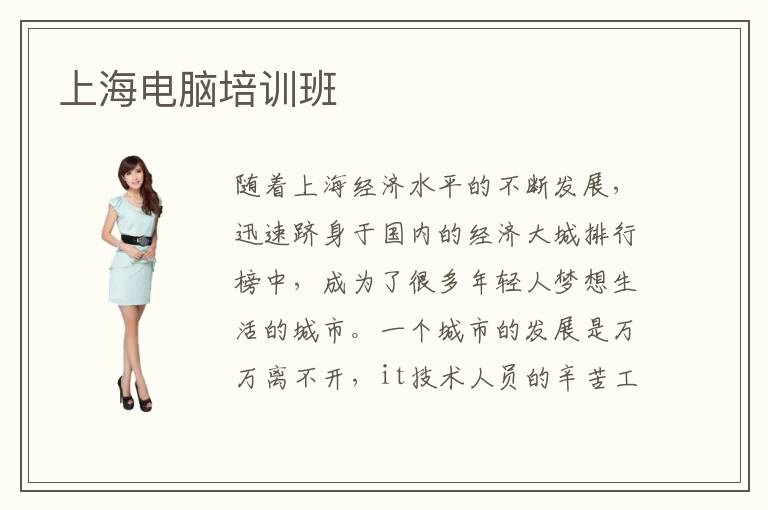 随着上海经济水平的不断发展,迅速跻身于国内的经济大城排行榜中,成为了很多年轻人梦想生活的城市。一个城市的发展是万万离不开,it技术人员的辛苦工作的,当然,只有过硬的专业技术,才能让大家在上海这样的大城市立足。因此,与时俱进的学习计算机新知识,不断提高自身的能力是很关键的,北大青鸟上海电脑培训班就是大家提升it技能的不错选择。
