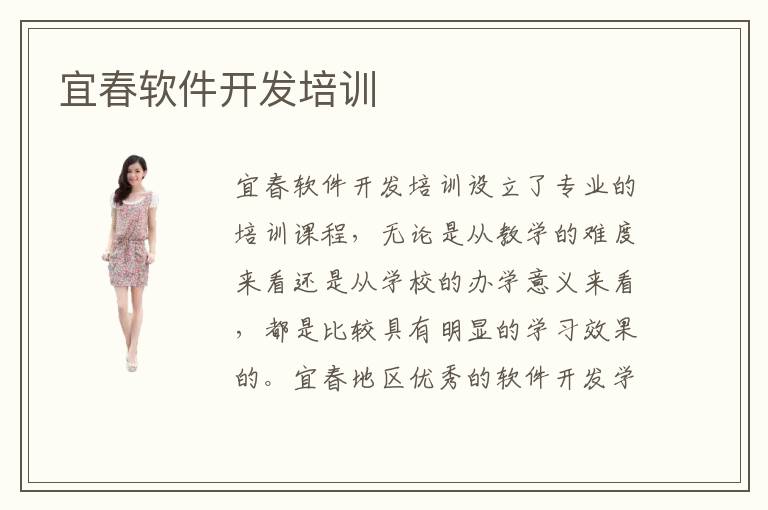 宜春是一个很坚强的城市,虽然前几年遭遇了灾难,但是,它依然朝气蓬勃地发展到了今天,宜春计算机科技发展起步晚确实不假,然而可贵的是,宜春计算机软件开发培训班的成立并没有受到大家的排斥。这说明了,宜春人民越来越明白软件开发培训对于就业学生们的重要性。宜春软件开发培训学校地址是哪里?宜春软件开发专业培训效果好吗?宜春计算机软件开发培训是专业的。