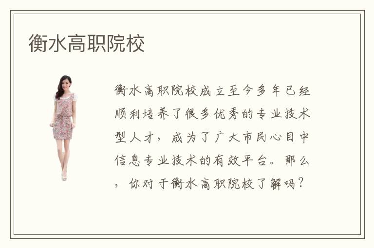 衡水高职院校成立至今多年已经顺利培养了很多优秀的专业技术型人才,成为了广大市民心目中信息专业技术的有效平台。那么,你对于衡水高职院校了解吗?你知道衡水高职院校主要开设了哪些热门专业吗?现如今是一个信息化发展的社会,因此计算机相关专业技术型人才对于各大企业来说是必不可少的,计算机相关专业的学习是一种热潮,衡水高职院校的热门专业自然也是与计算机专业相关的。