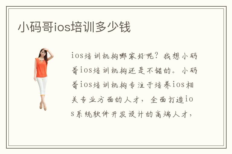 ios培训机构哪家好呢?我想小码哥ios培训机构还是不错的。小码哥ios培训机构专注于培养ios相关专业方面的人才,全面打造ios系统软件开发设计的高端人才,为国内互联网行业送去大批ios精英人才,与很多互联网行业企业都有合作。那么,小码哥ios培训多少钱呢?具体可以咨询小码哥ios培训中心官网的在线老师咨询哦,也可拨打校园热线电话询问哦。