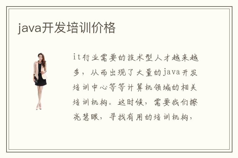 it行业需要的技术型人才越来越多,从而出现了大量的java开发培训中心等等计算机领域的相关培训机构。这时候,需要我们擦亮慧眼,寻找有用的培训机构,学会辨别虚假培训中心。java开发培训中心价格一般情况下是多少?进行java开发培训需要多少钱?JAVA开发培训中心好不好?java编程设计是当代热门技术,需要计算机工作者一起深入研发探讨。