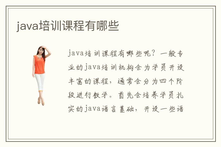java是一种用于开发应用软件的编程语言,java培训课程主要是java软件开发设计工程师的必要学习课程。java培训课程目录分为四个阶段,由浅入深,一开始是最基本的语法训练,再接着是数据库的开发,项目的开发设计,以及最后的毕业面试的经验教学。踏实学习java语言的基础才能成为一个优秀的java软件开发设计工程师,走上成功之路。