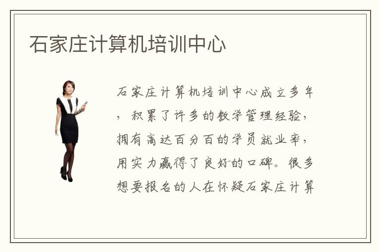 石家庄计算机培训班成立至今多年,招聘了大量名牌大学毕业的博士、硕士等高学历的计算机专业教师,以及一些在计算机行业有过两年以上丰富计算机经验的优秀计算机程序员,通过别具一格的教学方式,用幽默风趣的课堂氛围充分调动起学员对于学习计算机专业的热情,打破了计算机专业课程常规的无聊枯燥模式,让学生在四个月之内牢牢掌握计算机专业的相关技能。