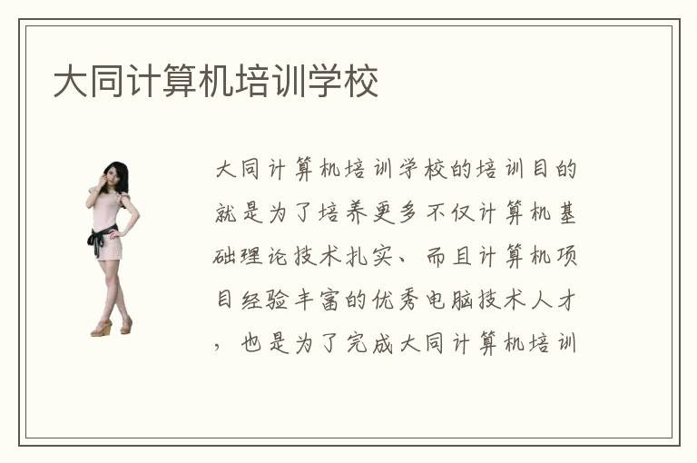 大同计算机培训学校的培训目的就是为了培养更多不仅计算机基础理论技术扎实、而且计算机项目经验丰富的优秀电脑技术人才,也是为了完成大同计算机培训学校在校学员想要成为优秀计算机精英的梦想。大同计算机培训学校也在为了这个目标进行努力,不断根据国内互联网、计算机市场的需求特征进行课程的更新改善,也成功为国内的各大互联网公司送去大批优秀计算机技术型优秀人才。