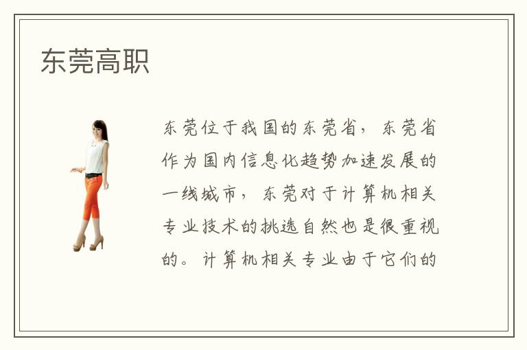 东莞东莞原本的经济基础就有很大的发展空间,相对应地,国家也对当地的科技发展抱有比较大的期望。东莞高职院校的成立顺应了时代的发展变化需求,通过了东莞高职技术学校的熏陶,学生们能够准确地给自己的学习生活进行一个定位,有一个明确的就业奋斗目标。东莞高职学校培训内容很丰富,东莞高职院校内容丰富、教育匪浅。
