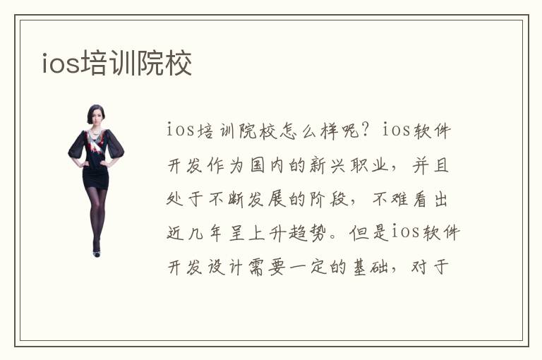 ios培训院校怎么样呢?ios软件开发作为国内的新兴职业,并且处于不断发展的阶段,不难看出近几年呈上升趋势。但是ios软件开发设计需要一定的基础,对于零基础的人来说是比较困难的。ios用户的不断扩大,也给互联网企业带来了商机,从而需要大量的ios高端人才。ios培训院校具有专业的针对性,可以在最短的时间内将你打造成ios软件开发的精英人才。