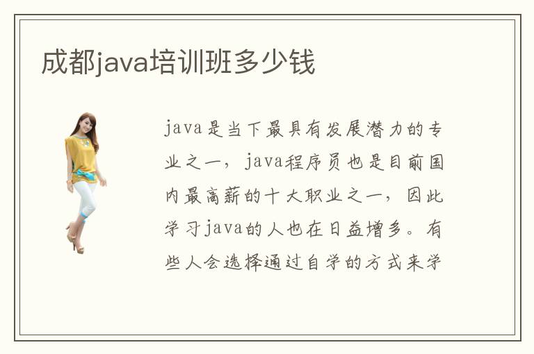 java专业的学习方式一般有两种,一种是通过java相关图书资料以及网络上java相关视频教程的自学方式,还有一种就是进入专业靠谱的java培训机构学习。自学的优势在于,需要的资金成本很少,但是需要花费的时间却很长,几个月、几年甚至几十年都没有完全掌握java技能的人不在少数。而专业的培训班就避免了这些问题,那么,成都java培训班都学费是多少钱呢?