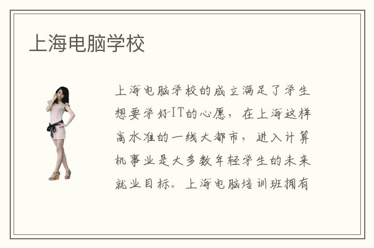 上海电脑学校的成立满足了学生想要学好IT的心愿,在上海这样高水准的一线大都市,进入计算机事业是大多数年轻学生的未来就业目标。上海电脑培训班拥有不错的口碑效果,学生接受了培训机构的相关训练,可以了解到计算机的一些高端技术知识。上海电脑培训学校情况介绍一般在网站上可以查阅到。上海电脑培训学校致力于培养新一批的计算机IT行业人才精英。