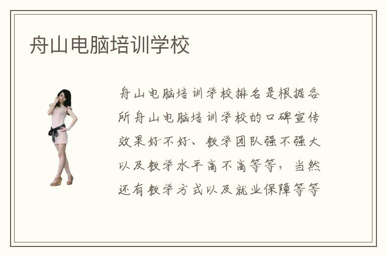 舟山电脑培训学校的成立目的是什么?舟山舟山是一个经济水平比较发达的地方,每年的外来流动人口有很多,舟山地区政府抓住了这样一个优势,就努力发展当地的计算机科技水平,让学生的计算机技术大幅度上升,从而调动舟山经济大进一步发展。舟山计算机培训学校贵不贵?舟山学习计算机就要投入一些学费。舟山计算机学校专业教学效果好不好?