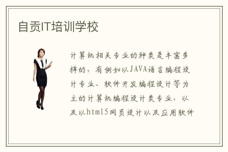 自贡IT培训学校是一所以计算机相关专业课程教学为主的学校,为不同计算机相关专业的不同就业方向设定了不同的培训课程。自贡IT培训学校在课程安排上也比较注重“与时俱进”,会根据市场发展需求的变化而调整相应专业的培训课程,也就使得自贡IT培训学校的学员在就业工作过程中更具有优势,当然自贡IT培训学校最终的教学目的也就是为自贡的各行各业培养更多优秀的IT技术型人才。