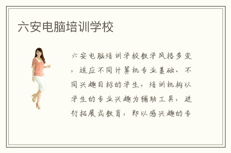 六安电脑培训学校就目前的计算机专业以及相关产业链上的专业的发展情况展开具体研究,根据发展新形势调整好六安计算机培训学校的培训重点难点项目,保证走在计算机发展道路的最前端。六安计算机培训中心官方网站上有专门的栏目进行六安电脑学校培训内容介绍,帮助想要进入到六安计算机学校的学生了解更多关于学校的内容,包括培训方向、培训特色、培训优势课程等等。
