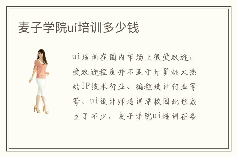 ui培训在国内市场上很受欢迎,受欢迎程度并不亚于计算机大热的IP技术行业、编程设计行业等等。ui设计师培训学校因此也成立了不少。麦子学院ui培训在各方面的口碑都在全国排名比较靠前,是一家性价比比较突出的ui设计培训学校。麦子学院ui培训大概要花费多少钱?麦子学院ui培训费用的清单是怎么样的?麦子学院ui培训学费贵不贵?可以承受吗?