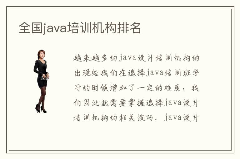 越来越多的java设计培训机构的出现给我们在选择java培训班学习的时候增加了一定的难度,我们因此就需要掌握选择java设计培训机构的相关技巧。java设计培训机构的选择必定需要参考一下全国范围内的java设计培训机构排名情况表,这样,才能选择到心仪的培训班。全国java设计培训班的培训质量排名情况是怎样的?全国java培训机构性价比排行是什么情况?