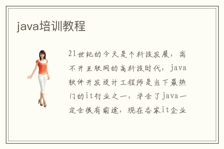 21世纪的今天是个科技发展,离不开互联网的高科技时代,java软件开发设计工程师是当下最热门的it行业之一,学会了java一定会很有前途,现在各家it企业都高薪聘请高技术的java工程师。学习java其实并不难,主要是需要大家坚持下去,毕竟计算机专业的学习课程都是枯燥无味的,要想坚持学下去是需要很大的毅力的,接下来就来搜索一些java培训教程来学习吧。