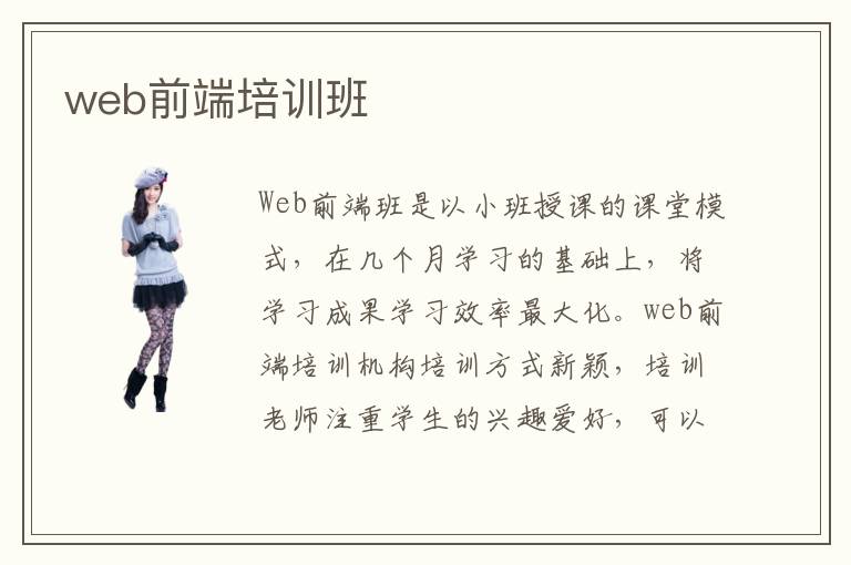 Web前端班是以小班授课的课堂模式,在几个月学习的基础上,将学习成果学习效率最大化。web前端培训机构培训方式新颖,培训老师注重学生的兴趣爱好,可以让学生充分体验到学习的乐趣。web前端培训学校的选择有一定的考究,需要参考web前端培训班的口碑情况的好坏。web前端培训班教学成果怎么样?web前端培训机构培训项目丰富吗?