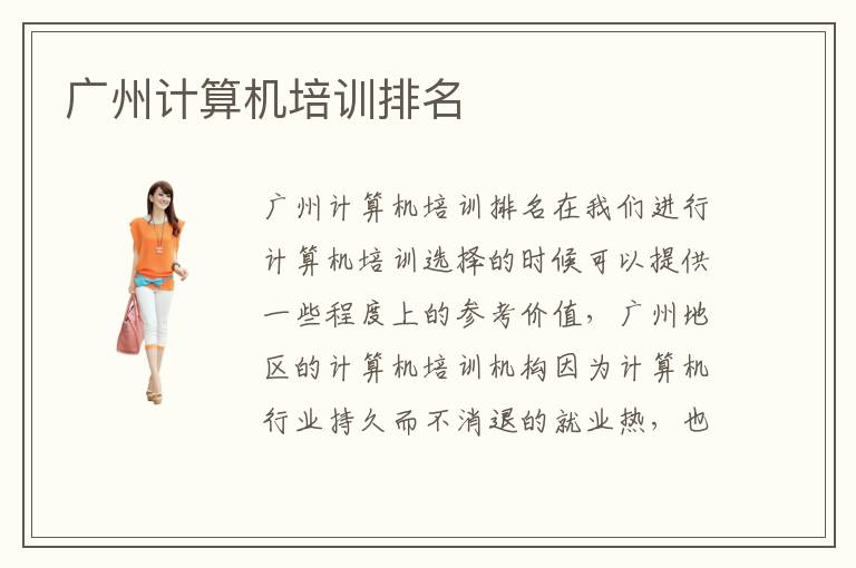 广州计算机培训计算机培训排名在我们进行计算机培训选择的时候可以提供一些程度上的参考价值,广州地区的计算机培训机构因为计算机行业持久而不消退的就业热,也在不断地发展壮大,市场对于广州计算机培训学校的需求量越来越大,好多优秀的培训学校被淹没,也有不少非专业的培训学校以次充好。那么,哪些是好的广州计算机培训学校呢?广州地区哪里有优秀的计算机培训机构?