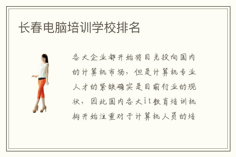 各大企业都开始将目光投向国内的计算机市场,但是计算机专业人才的紧缺确实是目前行业的现状,因此国内各大it教育培训机构开始注重对于计算机人员的培养,只有不断提高计算机专业技能,才能在计算机行业完成更高难度的项目制作。想要学好计算机专业技能,最有效、最快捷的方式就是通过专业的培训机构学习。那么,你知道长春电脑培训学校电脑培训学校排名是什么吗?