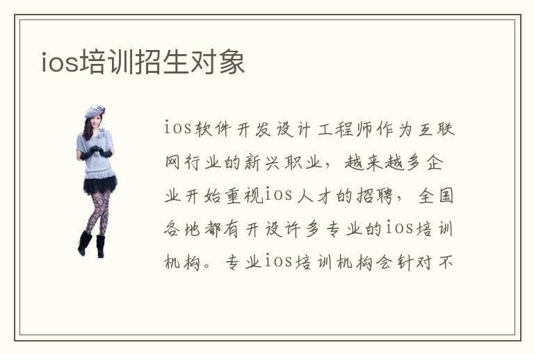 ios软件开发设计工程师作为互联网行业的新兴职业,越来越多企业开始重视ios人才的招聘,全国各地都有开设许多专业的ios培训机构。专业ios培训机构会针对不同基础的学员,因材施教。比如会为零基础的同学开设入门培训班,会为有基础想要提高专业技术的学员开设训练加强班之类的。不用担心ios培训招生对象有限制,它是面向全体受众的,因材施教,才能保障学员更高效的学习。